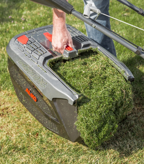 Oznacza to, że w przeciwieństwie do standardowej kosiarki, ścinki trawy nie są przenoszone płasko do kosza, lecz są wyrzucane po wysokiej trajektorii. W ten sposób pojemnik na ściętą trawę jest skutecznie napełniany od tyłu, bez blokowania kanału wyrzutowego.