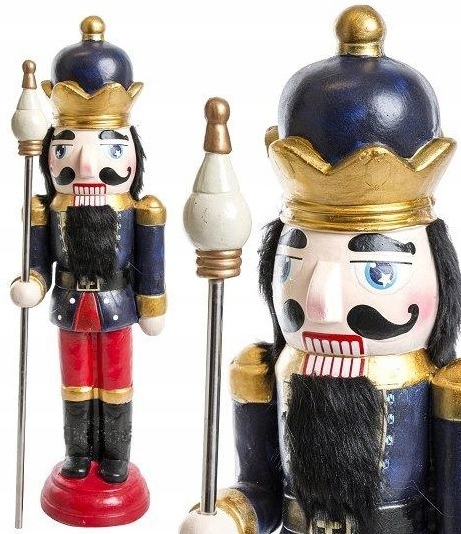 Piękny, wykonany z dbałością o szczegóły dziadek do orzechów z tworzywa sztucznego, o wysokości 60 cm. Taka dekoracja każdemu wnętrzu nada cudowny świąteczny klimat