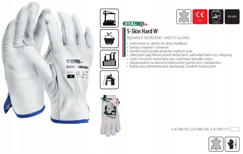 Rękawice Skórzane Odporne r. 10 S-Skin Hard STALCO